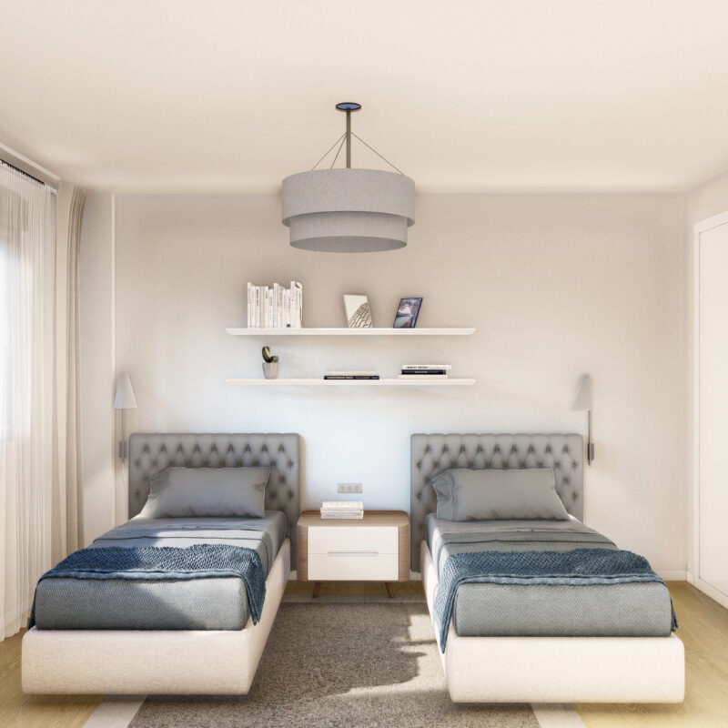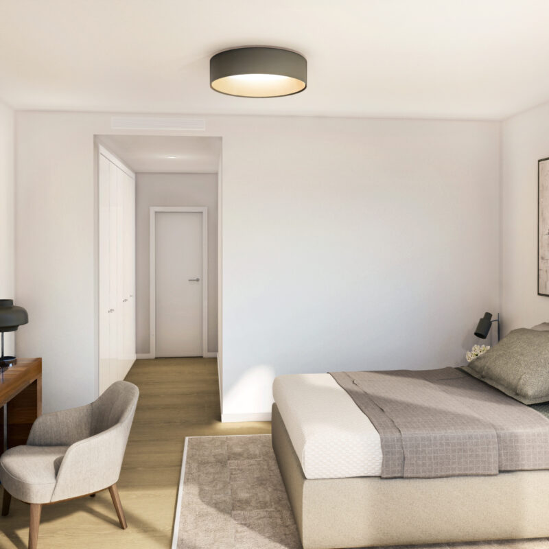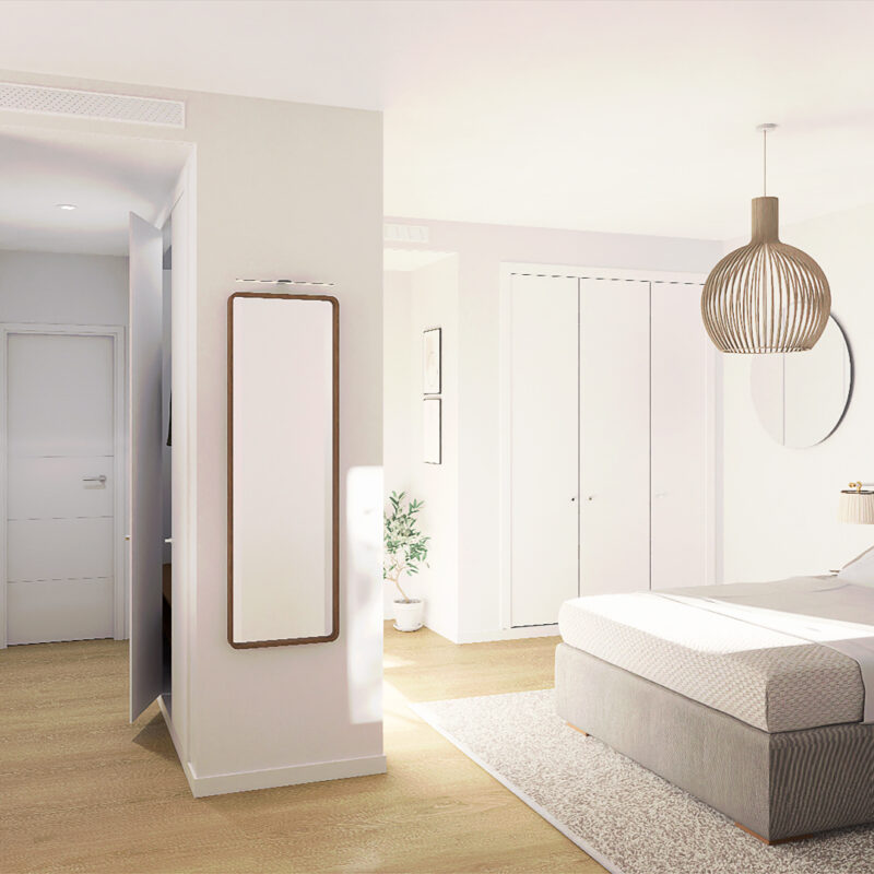 Un espacio de descanso que invita al confort. Habitaciones pensadas para tu bienestar, con acabados de alta calidad y diseño moderno. Despierta cada día en tu nuevo hogar Metrovacesa.