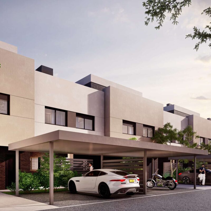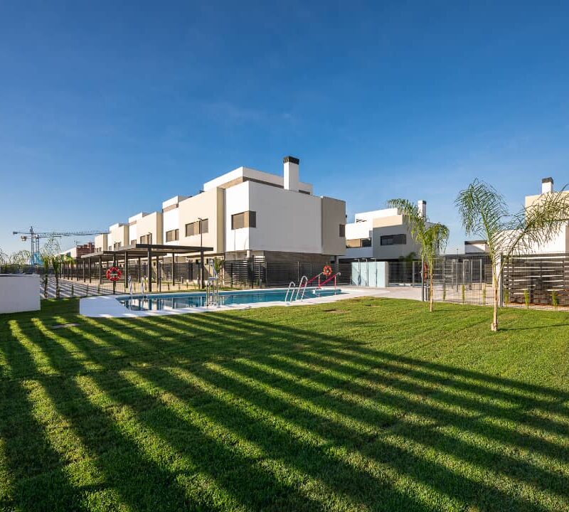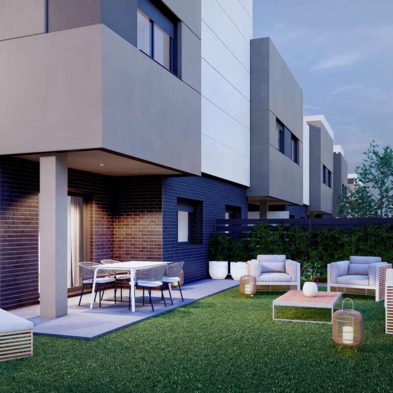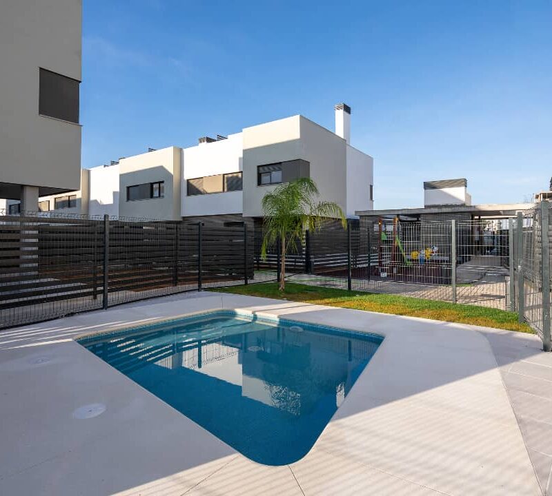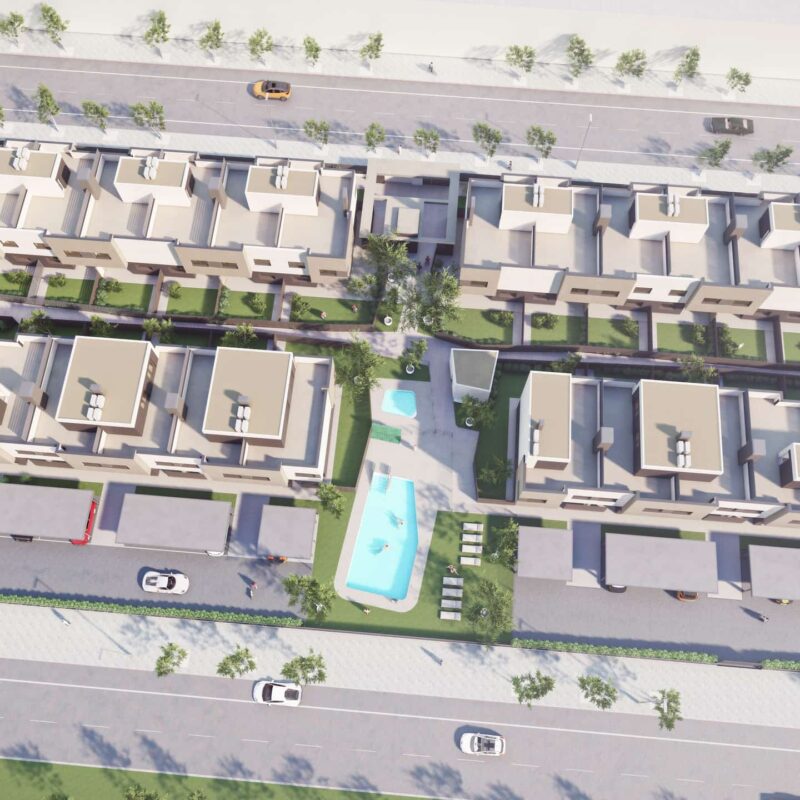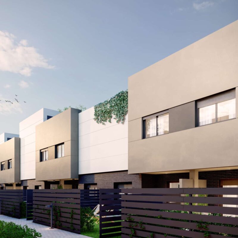 Exclusiva promoción unifamiliar de 31 viviendas adosadas y pareadas de 3, 4 o 5 dormitorios con garajes, jardines y grandes solariums privativos, y zonas comunes ajardinadas con piscinas.