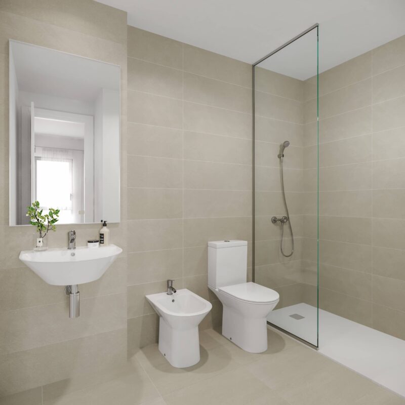 Un espacio privado para tu bienestar. Baños con acabados modernos y elegantes, donde cada detalle está pensado para tu comodidad.