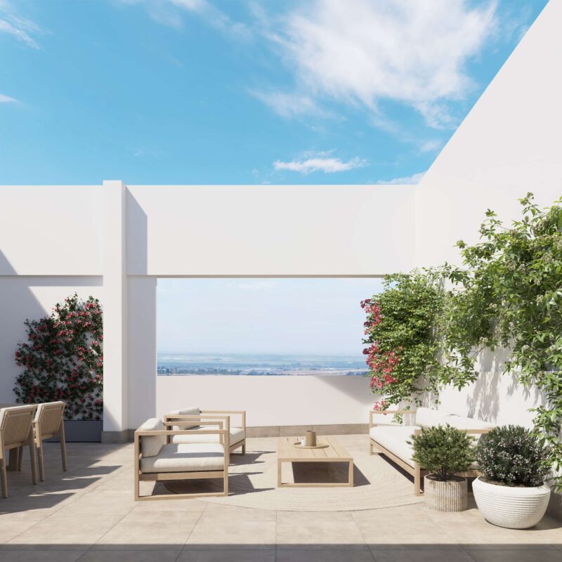 Tu rincón al aire libre. Vive el confort en magníficas terrazas diseñadas para brindarte el espacio ideal donde desconectar y relajarte. El lugar perfecto para disfrutar del aire fresco, convirtiendo cada momento en una experiencia de bienestar.