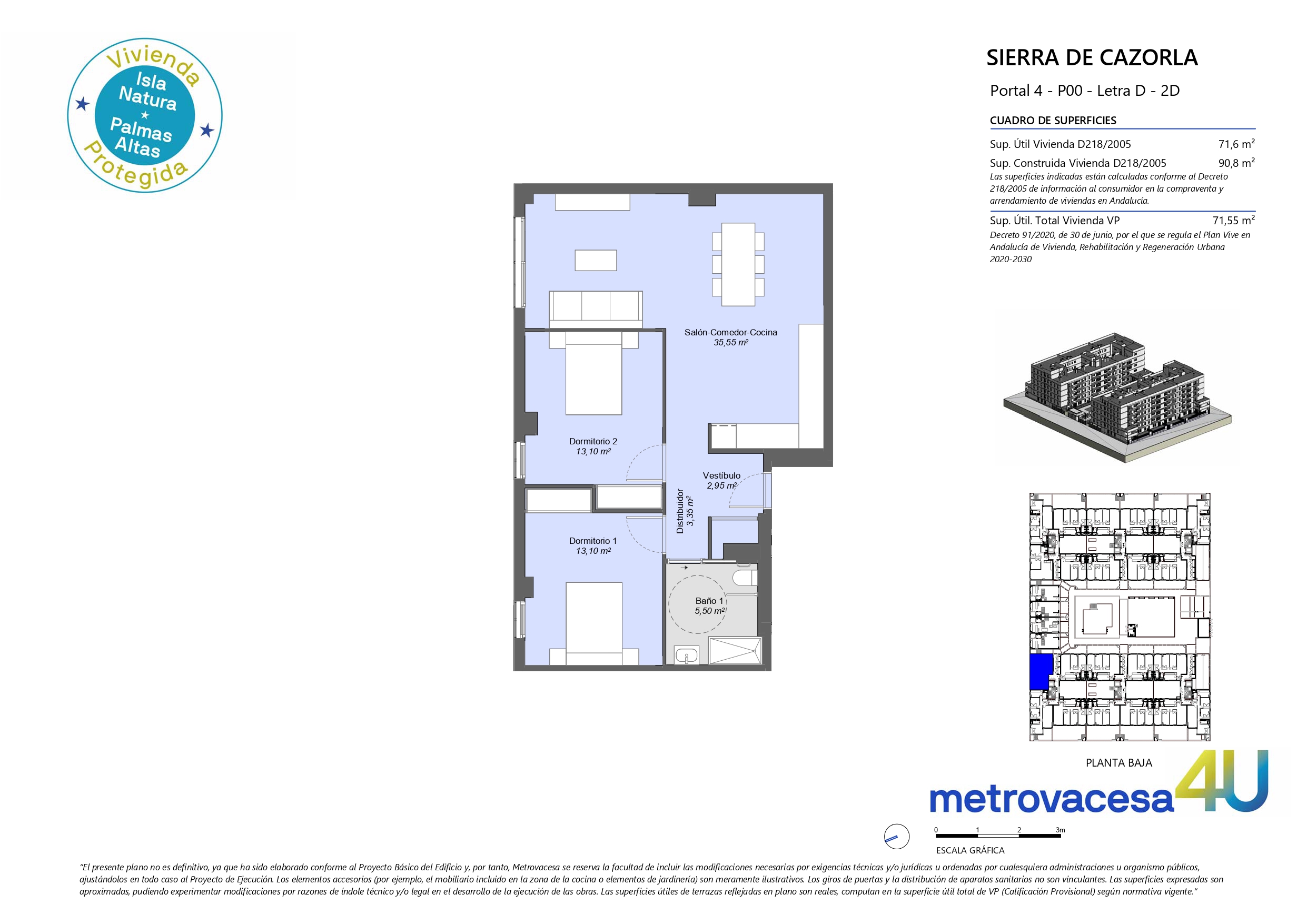 RESIDENCIAL VP SIERRA DE CAZORLA Primer desarrollo de VIVIENDAS PROTEGIDAS DE PRECIO LIMITADO de Metrovacesa en Isla Natura (Sevilla). Obra nueva plurifamiliar de 136 Viviendas Protegidas con plazas de garajes y trasteros. Viviendas de 2, 3 y 4 dormitorios.