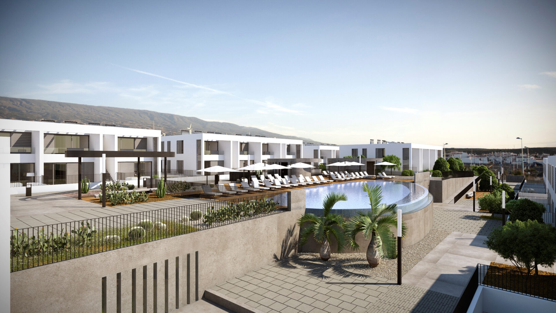 Urbanización residencial de 74 viviendas de 2 y 3 dormitorios. Esta promoción se ubica en un fantástico lugar del litoral Tinerfeño en el municipio de Arico, con acceso a magníficas playas de arena y protegido por la Punta de Abona, al resguardo del oleaje. A tan solo 20 minutos del Aeropuerto Tenerife Sur y a tan solo 25 minutos del núcleo turístico y de los Cristianos y las Américas.