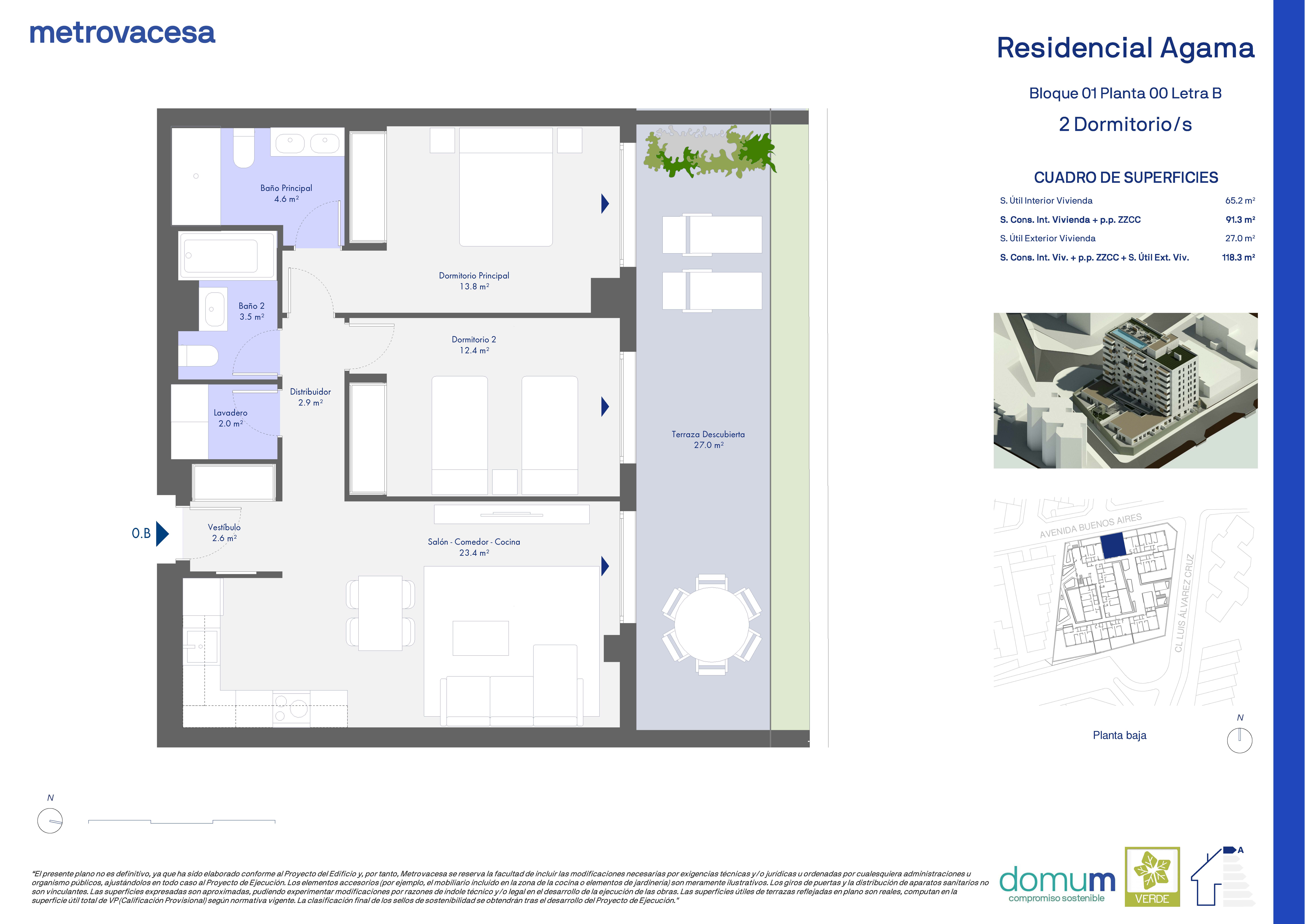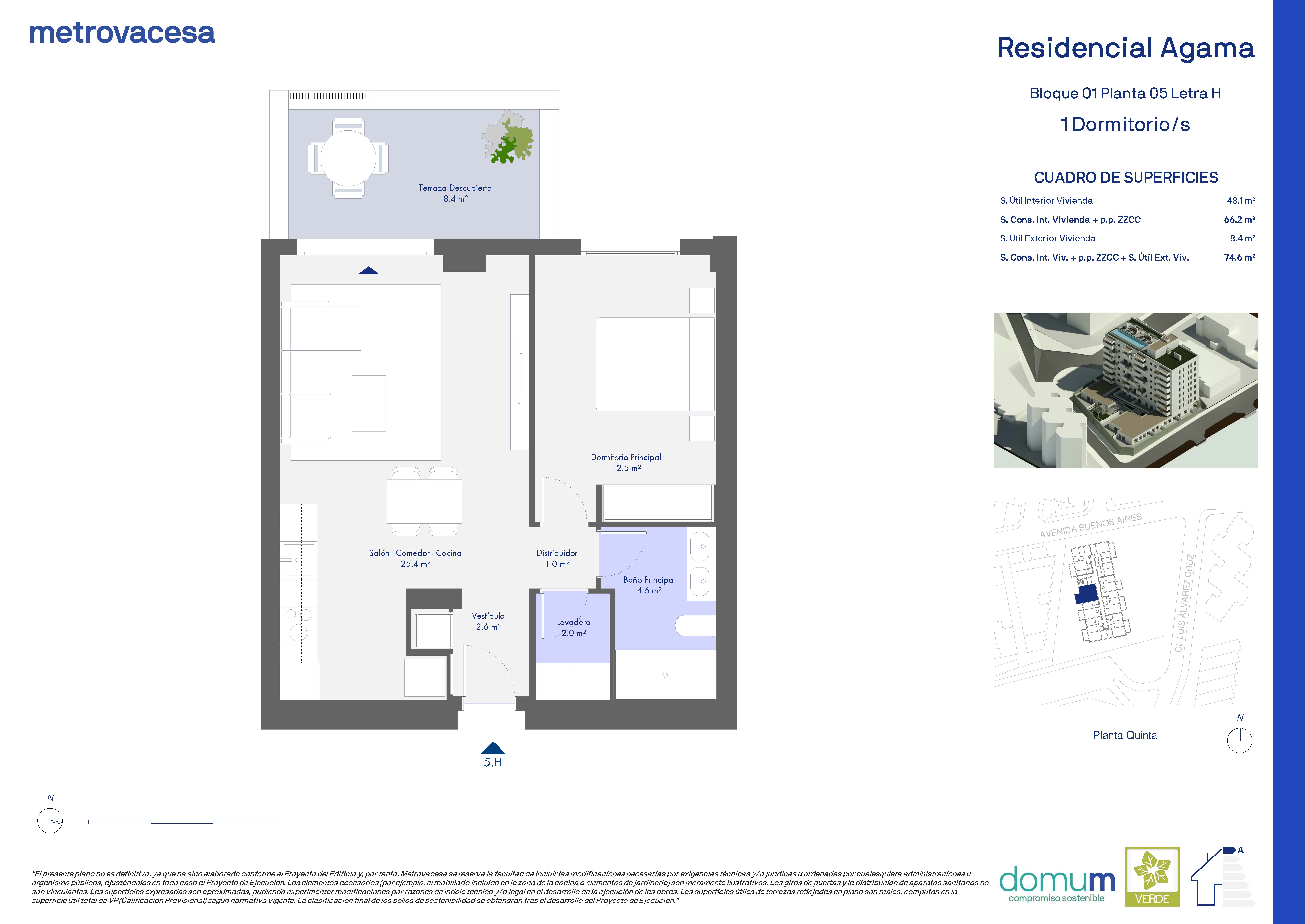 * El ahorro económico y energético mostrado en esta simulación es puramente informativo, por lo tanto, Metrovacesa no tiene ninguna responsabilidad ni obligación sobre dichos resultados. El cálculo se ha hecho basado en los datos incluidos en el documento "Calificación de la eficiencia energética de los edificios" versión 1.1 de Noviembre de 2015, publicado por el IDAE. Ministerio de Industria, Energía y Turismo.