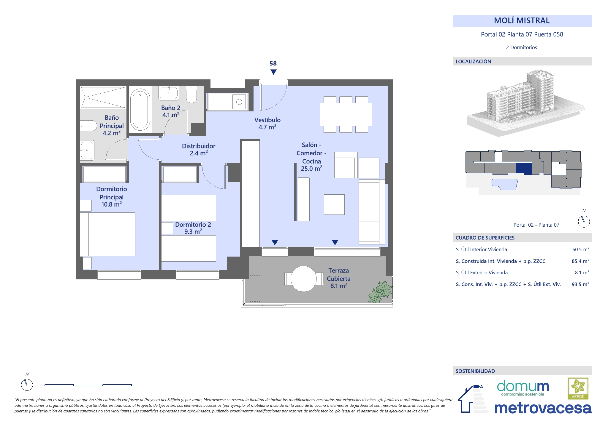 * El ahorro económico y energético mostrado en esta simulación es puramente informativo, por lo tanto, Metrovacesa no tiene ninguna responsabilidad ni obligación sobre dichos resultados. El cálculo se ha hecho basado en los datos incluidos en el documento "Calificación de la eficiencia energética de los edificios" versión 1.1 de Noviembre de 2015, publicado por el IDAE. Ministerio de Industria, Energía y Turismo.