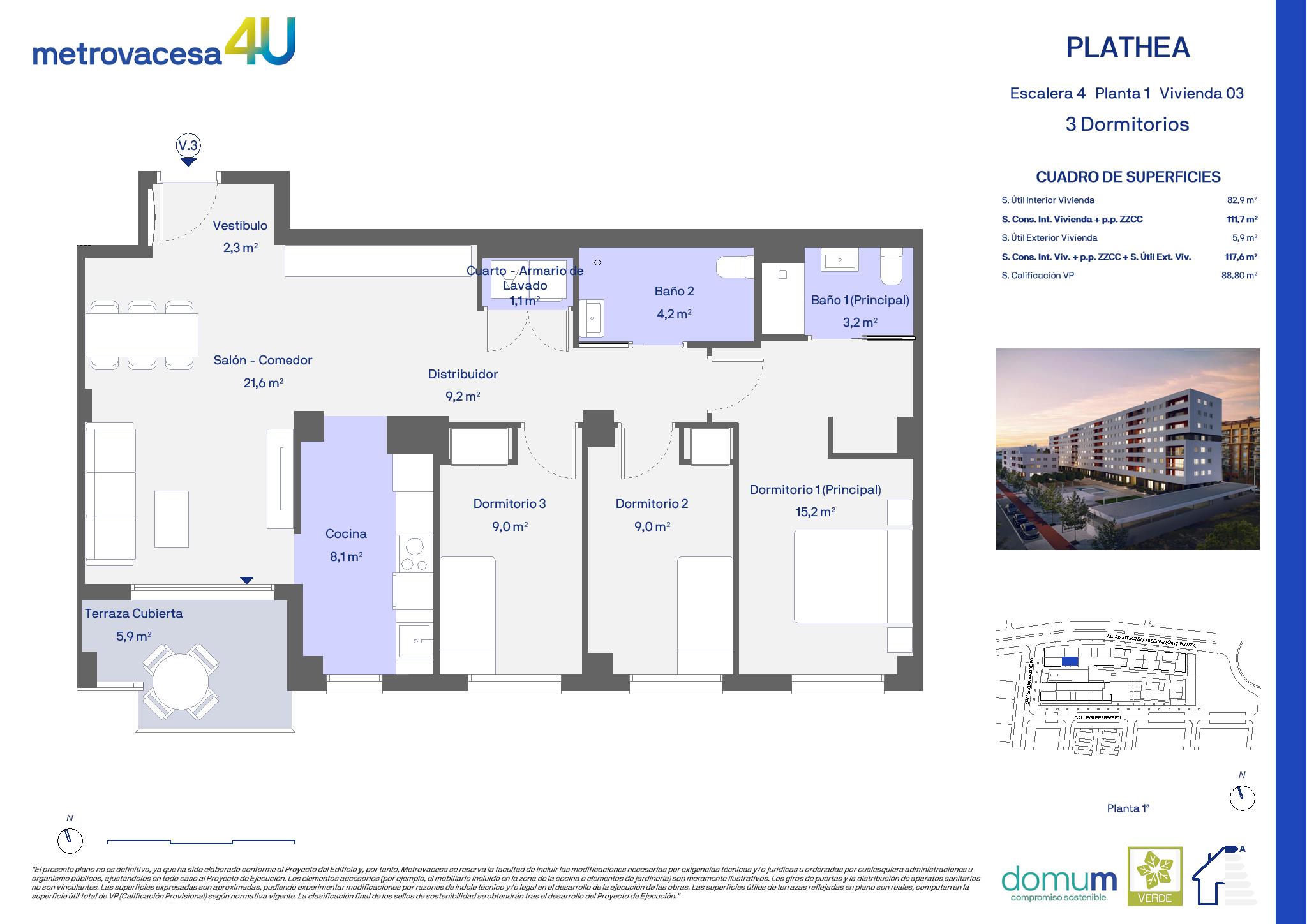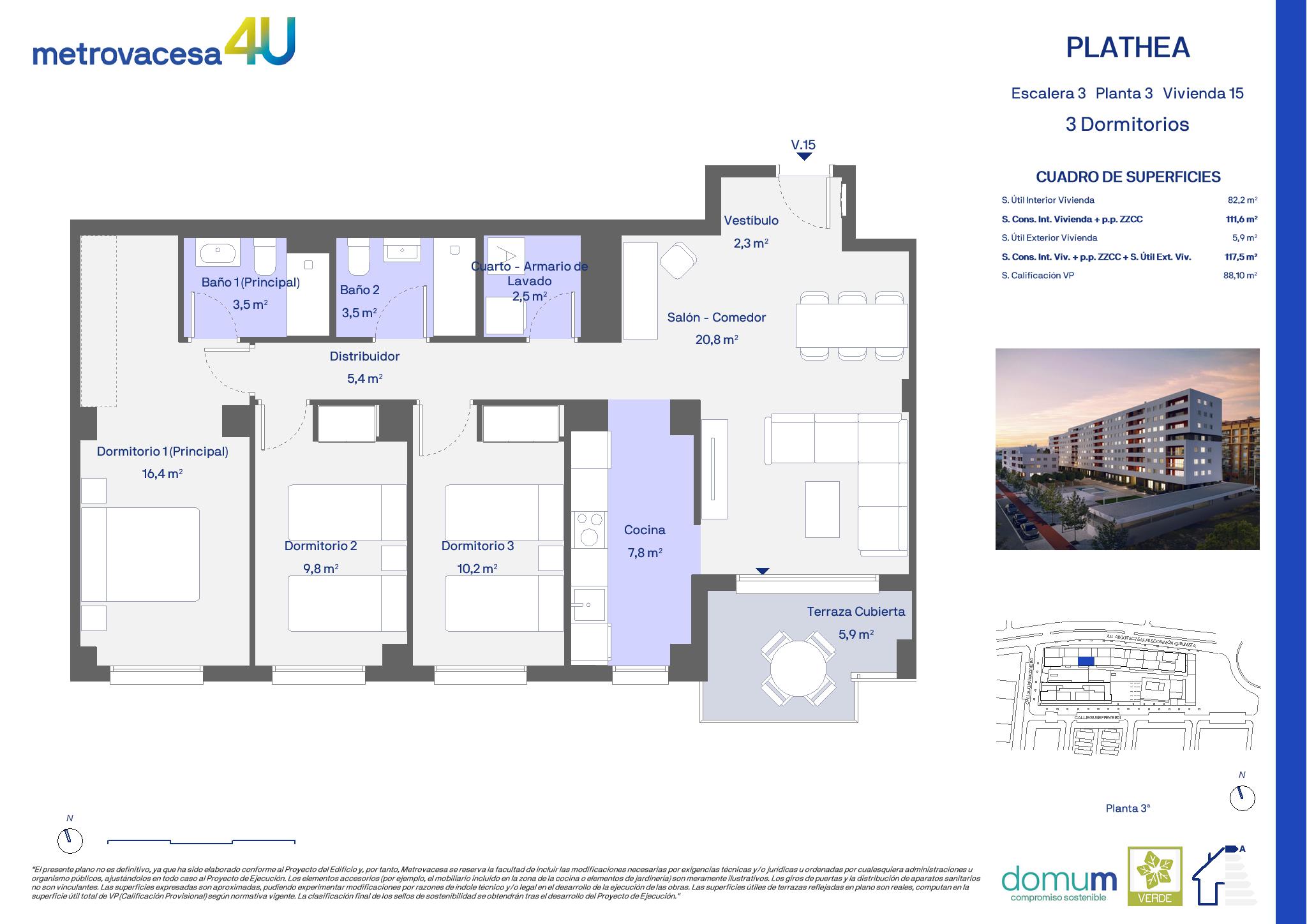 | 3 | 3 | 2 | 117.7 * | 5.9 | Ver plano | 228.100 € *** |