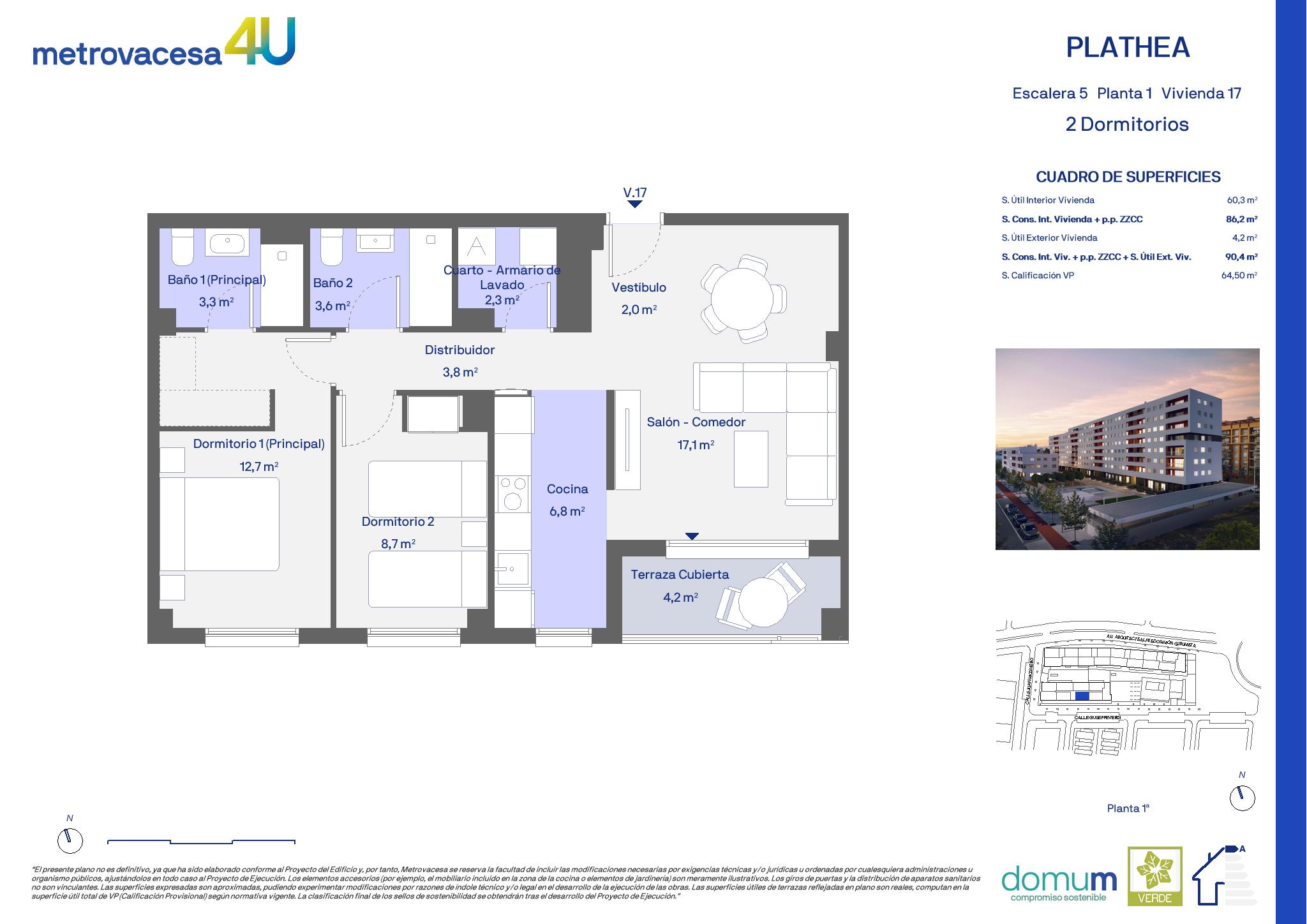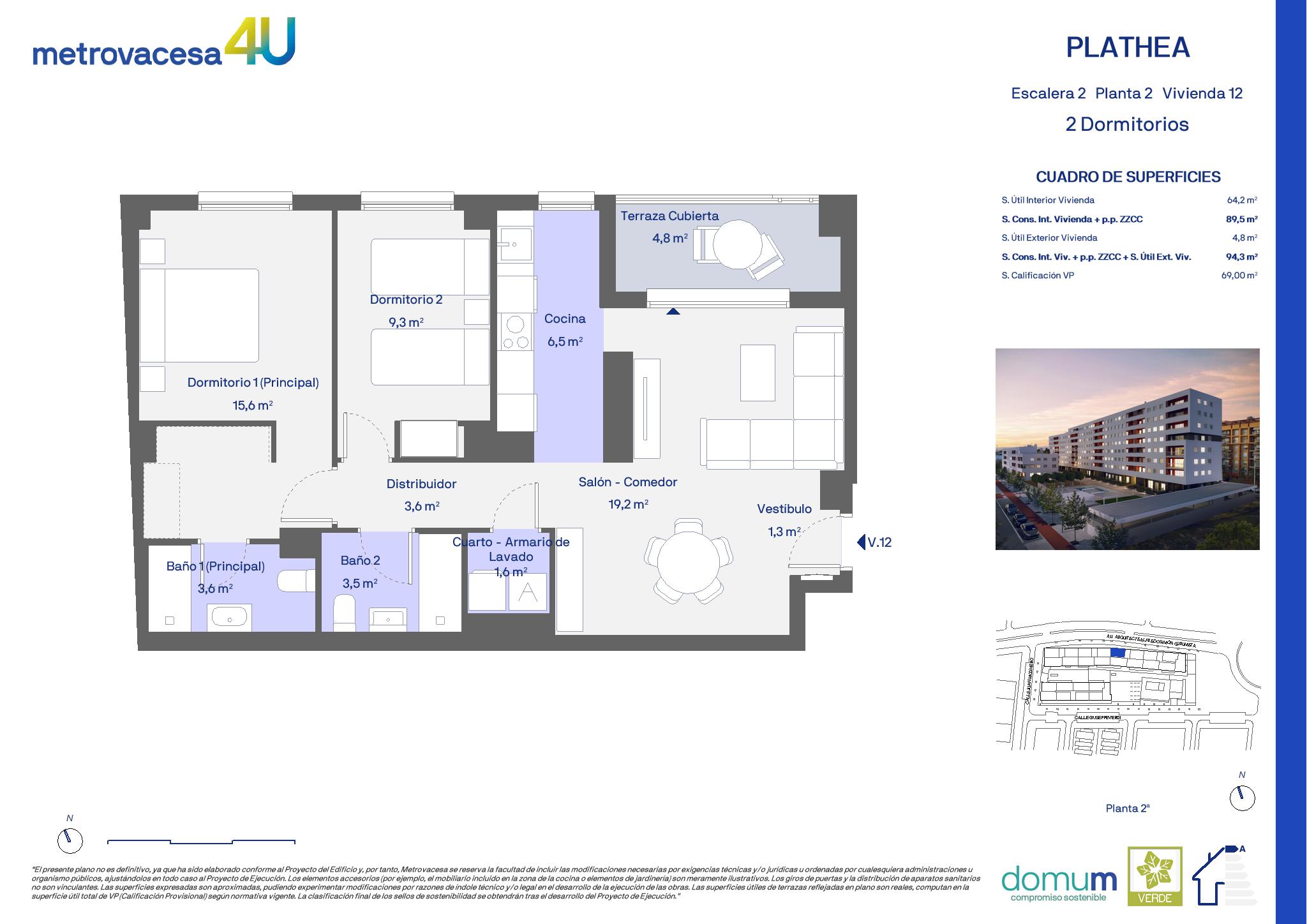 | 6 | 2 | 2 | 91.7 * | 4.7 | Ver plano | 203.800 € *** |