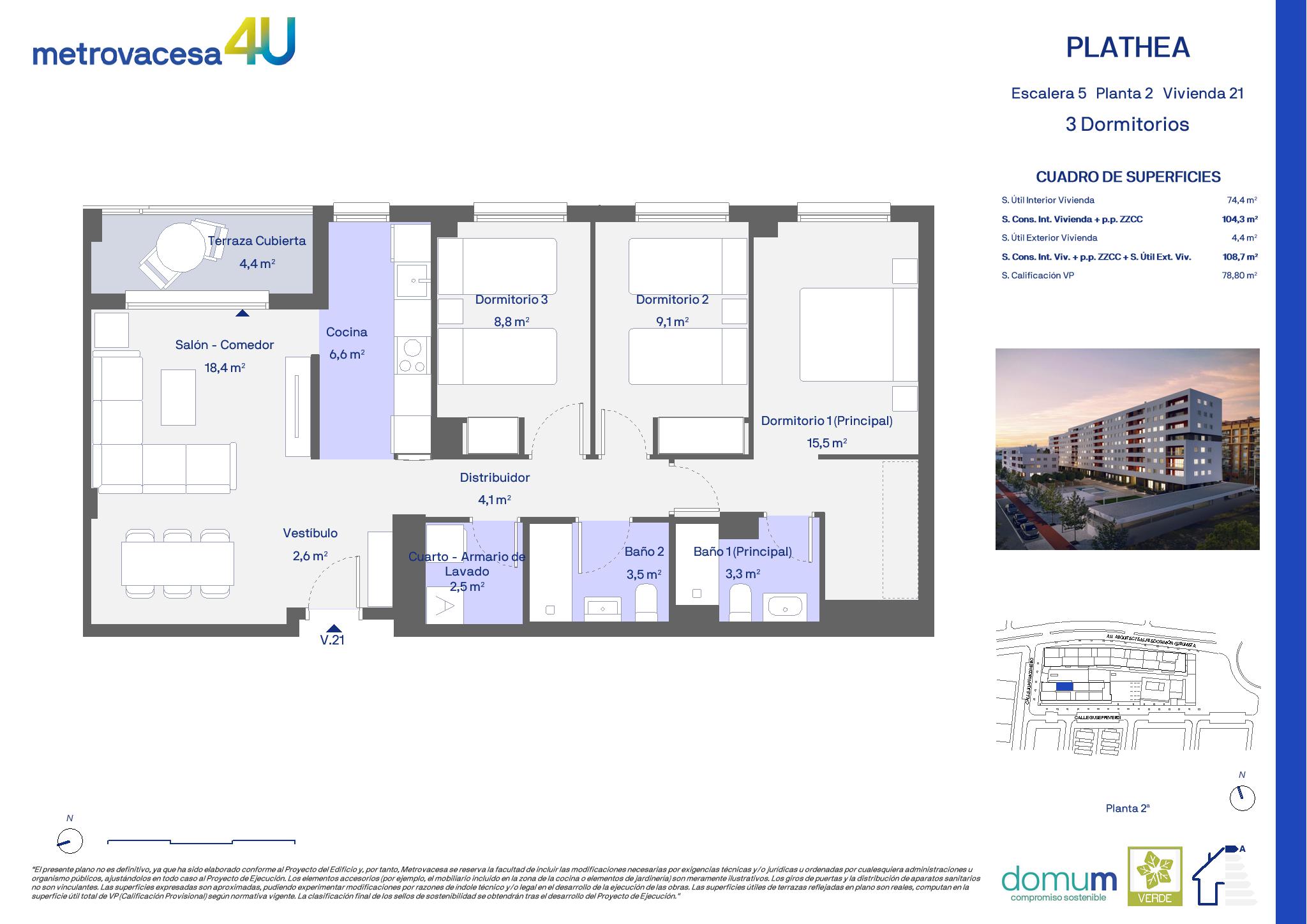 | 2 | 2 | 2 | 91.1 * | 4.7 | Ver plano | 202.800 € *** |