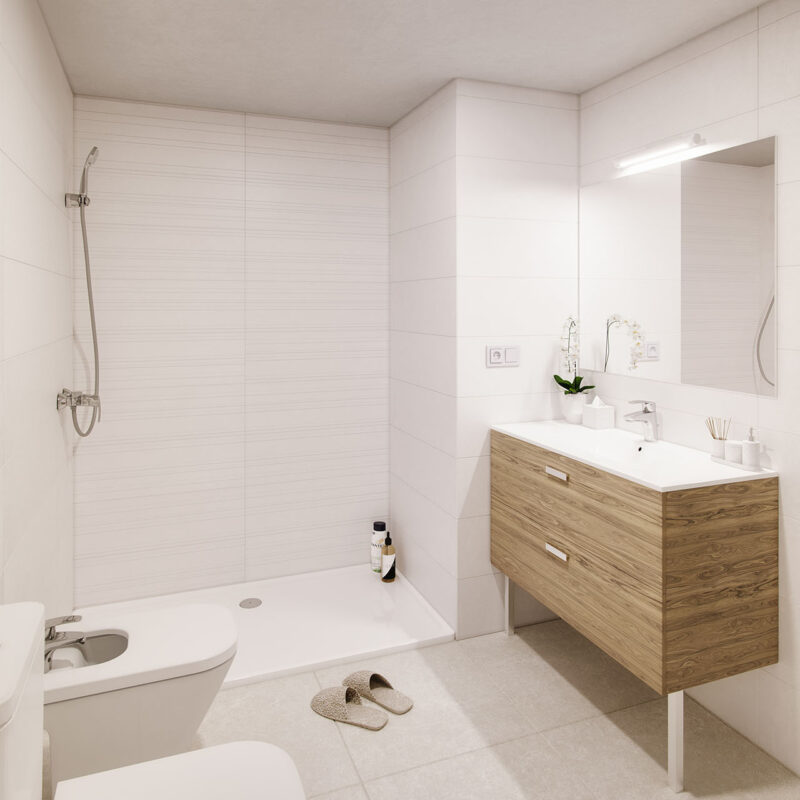 Un espacio privado para tu bienestar. Baños con acabados modernos y elegantes, donde cada detalle está pensado para tu comodidad.