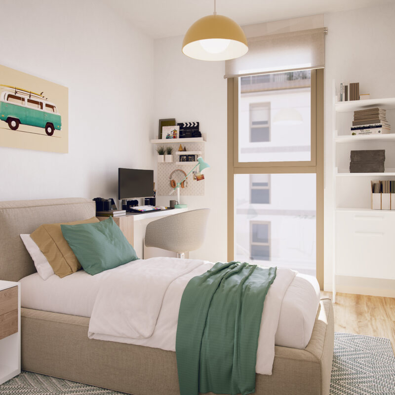 Un espacio de descanso que invita al confort. Habitaciones pensadas para tu bienestar, con acabados de alta calidad y diseño moderno. Despierta cada día en tu nuevo hogar Metrovacesa.