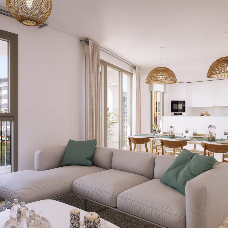 Al igual que en la primera fase, el diseño y la arquitectura más cosmopolita se conjugan para ofrecerte unas viviendas con una distribución interior donde prima la luz, el confort, la amplitud y la flexibilidad de sus espacios.