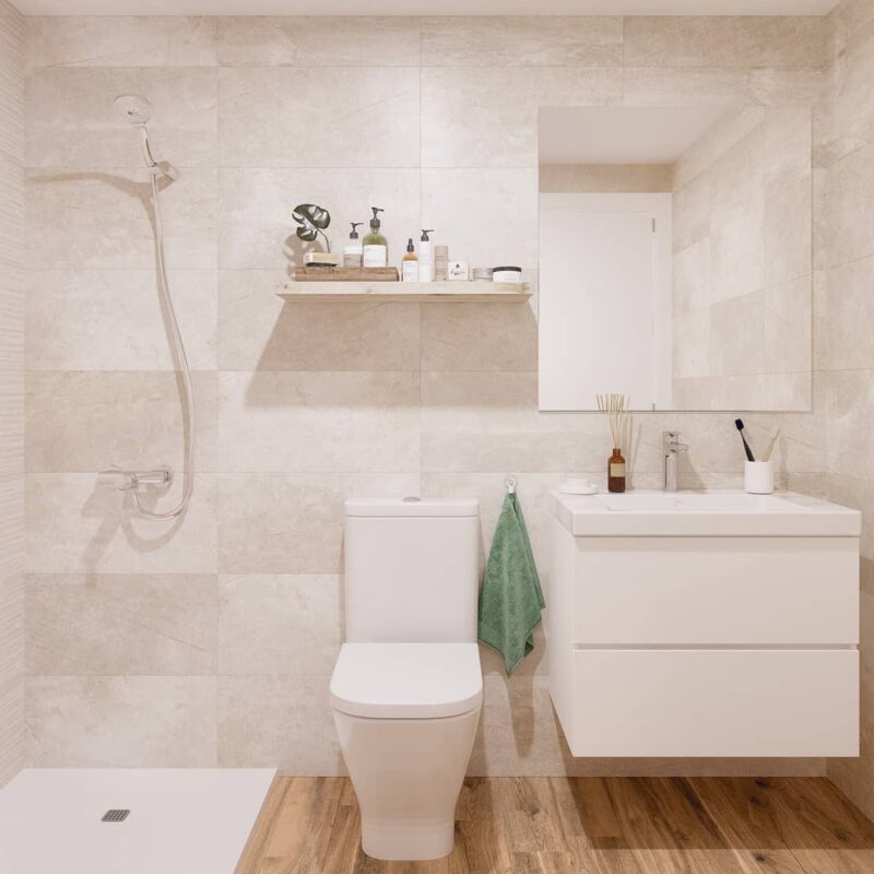 Un espacio privado para tu bienestar. Baños con acabados modernos y elegantes, donde cada detalle está pensado para tu comodidad.