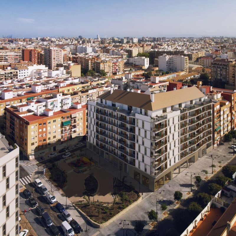 Residencial de obra nueva en la Avenida Constitución 188, en una nueva plana en plena ciudad de Valencia. Bien ubicado, buenas comunicaciones, cerca estación de Metro-tranvía, Centro de Salud, colegios y universidades.